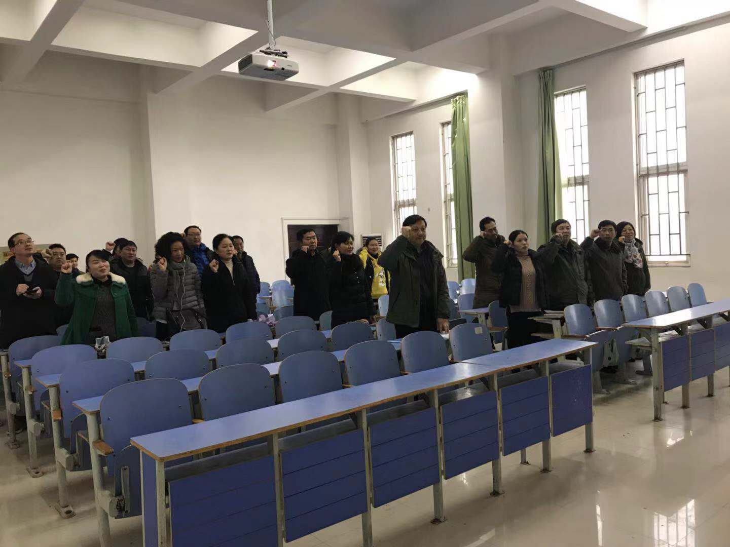 尤影主任利用多媒体课件对大家进行了《新宪法》学习解读并要求大家会后迅速传达到未能参加学习的每位员工。田路春书记带领大家进行宪法宣誓,随后并进行了向“张玉滚先生学习动员会”。