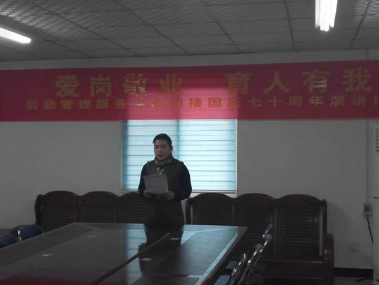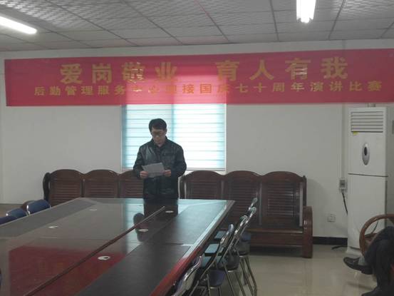 为庆祝国庆七十周年,提升后勤管理服务中心职工的服务意识、爱岗精神,后勤中心于2019年4月8日下午举办以“爱岗敬业 育人有我”为主题的演讲比赛。后勤中心领导班子成员出席比赛并担任本次比赛评委。