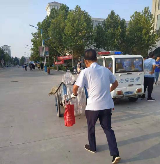 综合管理科要求保洁人员对校区卫生进行进行彻底清理,并对重点区域进行巡查、及时清扫;绿化人员对草坪、树木进行修剪,为新生和家长们打造优美、整洁的校园环境。