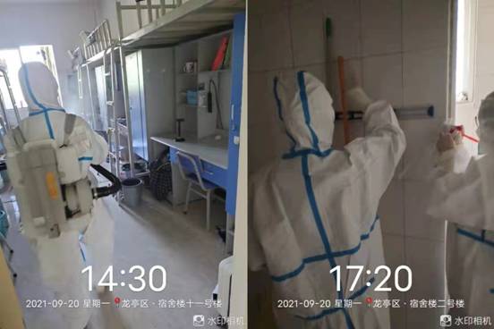 专业消毒人员采用雾状喷洒的方法分别对学校教室、办公区、宿舍、食堂、公共区域等进行全区域立体式消杀,特别是楼梯扶手、桌椅、宿舍水房等人体密切接触的地方,进行反复密集消毒处理,不遗漏一个角落。消杀完成后,按照国家卫健委、教育部关于新冠肺炎疫情防控技术方案相关要求,委托具有资质的第三方检测机构对此次消杀进行评估验收,确保起到预防性消杀效果。