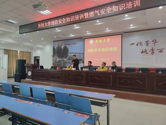 为全面落实消防安全责任,2021年11月2日下午,后勤管理服务中心在校土木学院六楼报告厅对学校食堂从业人员进行了消防及燃气安全知识培训,后勤管理服务中心主任徐纪珂、保卫处处长贾晨阳出席培训会,后勤中心特邀新奥燃气安全管理高级讲师邱治国、安全管理专员杨博进行燃气安全专项培训,会议由饮食科科长梁战军主持。