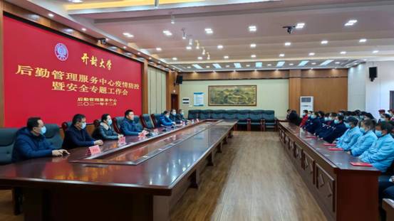 12月21日上午,后勤管理服务中心召开疫情防控暨安全专题工作会,后勤中心领导成员、员工及外包服务单位人员参加会议,会议由后勤中心主任徐纪珂主持。