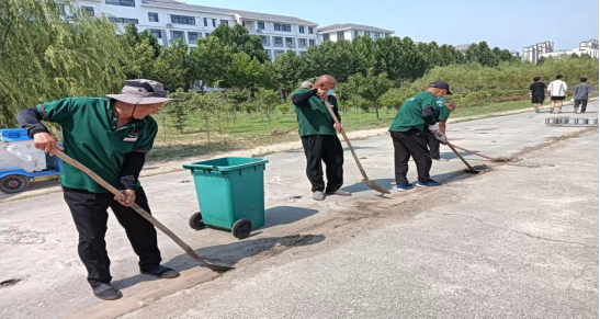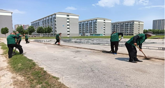 6月14日学校举行毕业典礼活动,为保障活动现场卫生质量,给师生创造干净、整洁的会场环境,6月13日下午后勤卫健办组织工作人员冒着烈日酷暑,对硬化路面以及草坪内的砖头瓦坏、白色垃圾、杂草、积土进行大清理工作。