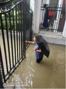 7月8日上午,随着雨势增强,我校多处低洼地段的道路已积水,尤其是5-8号宿舍楼西大门较低处,积水颇深,存在较大安全隐患,虽然已立上警示牌,拉上警戒线,及时关闭院大门,但宿舍工作人员依然雨中值守巡视,防止学生路过滑倒摔伤,做到防患于未然。此外,宿管部又开启了宿舍楼连廊通道保障学生能够正常通行。