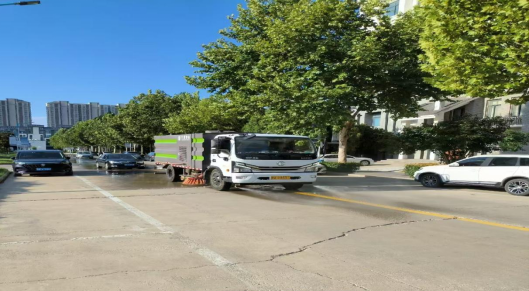 4、为提升校园环境,使用大型机器对校园道路进行洒水;