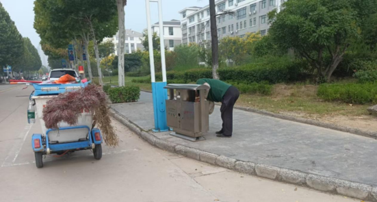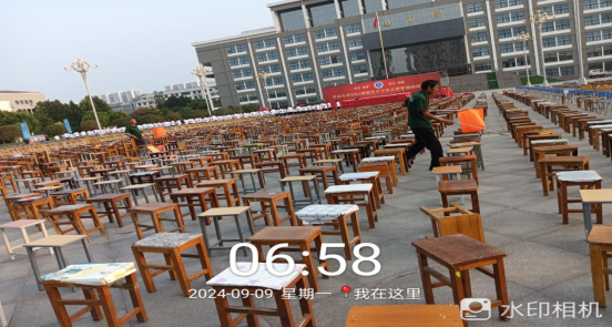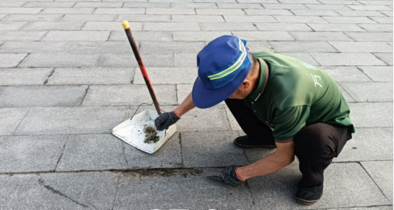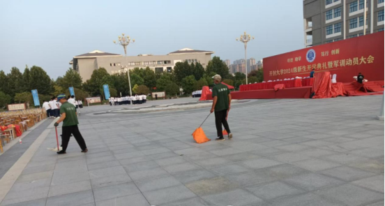 4、工作人员打扫开学典礼现场卫生;