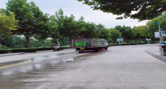 3、为保障环境,使用大型机械对校园道路进行洒水;
