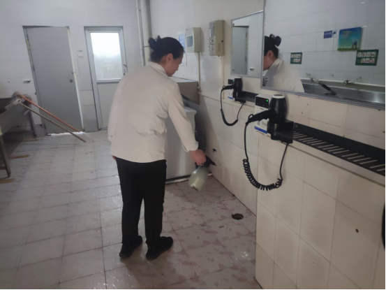 消杀过程中,各楼人员严格按照卫生标准和操作规范,采用低毒、高效的环保药剂,重点对宿舍楼的楼道、楼梯间、卫生间、垃圾存放处、墙角缝隙等病媒生物易滋生区域进行喷洒和处理,同时针对宿舍门窗周边、排水管道口等关键部位进行细致防护,有效降低蚊虫、蟑螂、老鼠等病媒生物的滋生和传播风险。
