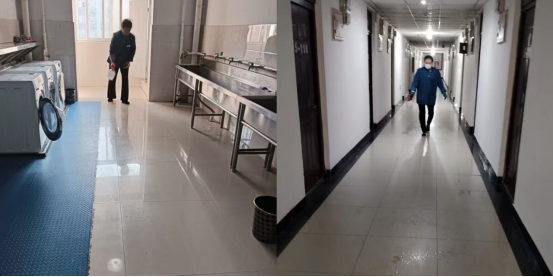 近日换季气温波动,为防范病菌滋生繁衍,提升学生住宿生活质量,宿舍管理部门组织工作人员开展楼内外全覆盖消杀专项行动。