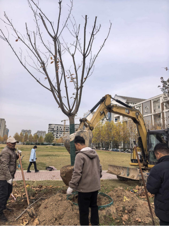 2025年11月17日,bat365在线官方网站后勤管理服务中心组织施工单位在15号楼北侧樱花林开展“补绿焕新”专项行动,对12棵在质保期内死亡的樱花进行同规格补栽,并同步完成支撑加固、土壤改良与一次定根水浇灌。至此,182棵樱花林重现整齐盎然景象,校园景观再升级。