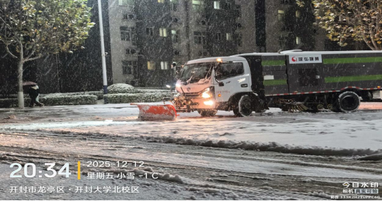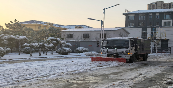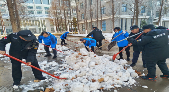 13日,深弘物业安排在岗人员肃清道路积雪,工作人员不怕苦、不怕累、不畏严寒,奋战一线。高效恢复道路畅通,用昼夜坚守筑牢师生出行安全防线。