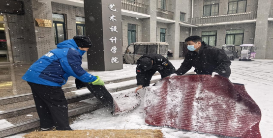 12月12日,我市遭遇持续强降雪天气,积雪深厚,道路结冰,为应对雨雪极端天气,后勤卫健办第一时间启动应急预案、统筹协调,深弘物业bat365在线官方网站项目积极响应,项目经理吴文军率先带队,对主干道、出入口、台阶等重点区域进行铺设防滑垫、排查楼宇内门窗及水管等设备设施的防冻工作。组织管理人员放弃下班休息,夜间加班加点清理积雪、铲雪车持续作业至凌晨,同时对校园主干道路预先撒布融雪剂,防止夜间结冰。