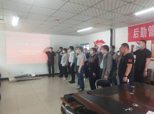 首先,全体党员站在党旗下,高举右拳庄严宣誓,牢记共产党员的政治责任和历史使命。然后,田书记带领大家学习习近平总书记关于防灾减灾救灾工作系列重要论述和《河南郑州“7.20”特大暴雨灾害调查报告》精神。