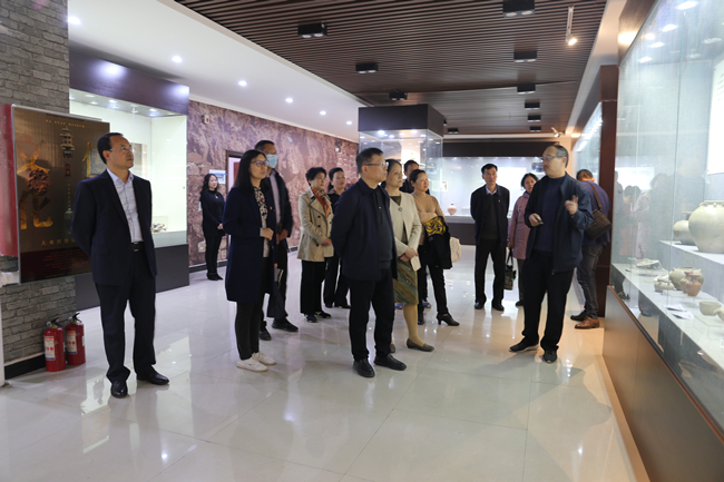 校党委书记陈灿向河南省地方史志办公室党组书记、主任管仁富颁发赠书感谢状