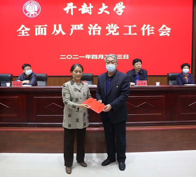 本站讯 为全面贯彻党的十九大和十九届五中全会精神、十九届中央纪委五次全会、十届省纪委六次全会和十一届市纪委六次全会、河南省教育系统会议精神,扎实完成全面从严治党的各项任务,营造风清气正的政治教育生态,4月23日下午,我校在行政楼第一会议厅召开2021年全面从严治党工作会议。校领导陈灿、宋志敏、万是明、成芳、李治、马林强、谢文忠出席了会议,学校中层副职以上干部、民主党派负责人、正高级职称人员、博士参加了会议。会议由校长宋志敏主持。