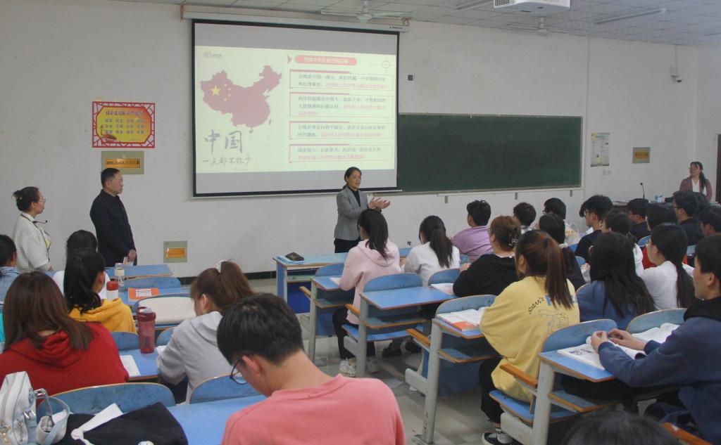 本站讯 4月30日上午,校党委书记陈灿到15号教学楼102教室,听取了思想政治理论教研部卢雪老师的《形势与政策》课程讲授。督导室主任李伟、思政部主任常素芳、副主任陈友东一同听课。