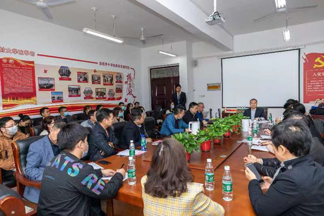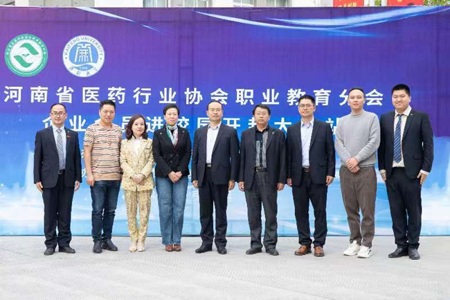 本站讯 近日,河南省医药行业协会职业教育分会在我校举行“医药行业校企合作、产教融合交流会”,40家医药行业会员单位以及河南应用技术职业学院、河南省医药健康技师学院、济源职业技术学院院校领导出席交流会。会议由校党委委员、河南省医药行业协会职业教育分会副会长谢文忠主持,医学部副主任郭明广、对外交流合作中心主任李志伟参会。