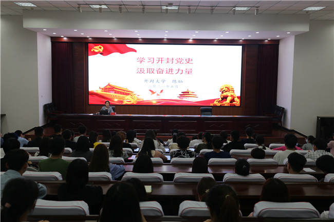 本站讯 为认真贯彻落实习近平总书记在党史学习教育动员大会上的重要讲话精神,促进师生深刻领会开展党史学习教育、弘扬开封红色革命文化、开展“4+1+1”工作的重要意义,5月19日下午,我校在行政楼第一会议厅举办了党史学习教育专题工作报告会,校党委书记陈灿以《学习开封党史 汲取奋进力量》为题为师生做了专题报告,专题报告会由校党委委员、工会主席成芳同志主持。