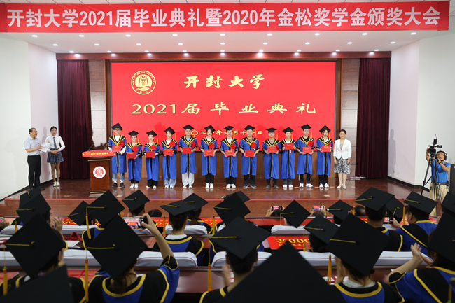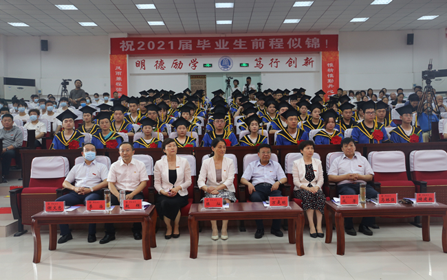 副校长赵辉宣读了我校2021届毕业生资格审查结果,5714名毕业生符合毕业条件,顺利毕业。校工会主席成芳宣读了2021年河南省及我校优秀毕业生表彰决定,共有114名河南省优秀应届大中专毕业生、568名bat365在线官方网站优秀应届毕业生、543名bat365在线官方网站三好学生和263名bat365在线官方网站优秀学生干部受到表彰。校领导为获奖代表颁发荣誉证书。