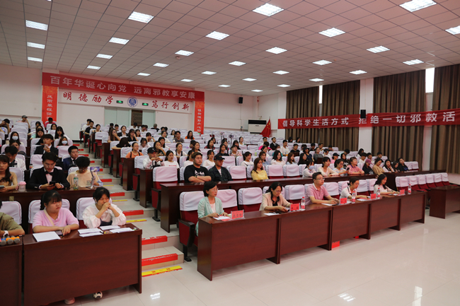 本站讯 6月17日下午,由我校党委宣传部主办的“以青春之名 赴百年之约”第十七届挑战金话筒主持人大赛决赛在行政楼第一会议厅举行。大赛邀请了开封市主任播音员、河南省十佳播音员、开封市专业技术拔尖人才、开封市朗诵协会副会长计亮,开封报业集团记者宋献霞,我校党委委员、党委宣传部部长陈岩,校工会副主席秦雪峰,公共艺术教研部主任刘莎莎担任大赛评委。各院部学生代表约200人参加并观看了比赛。