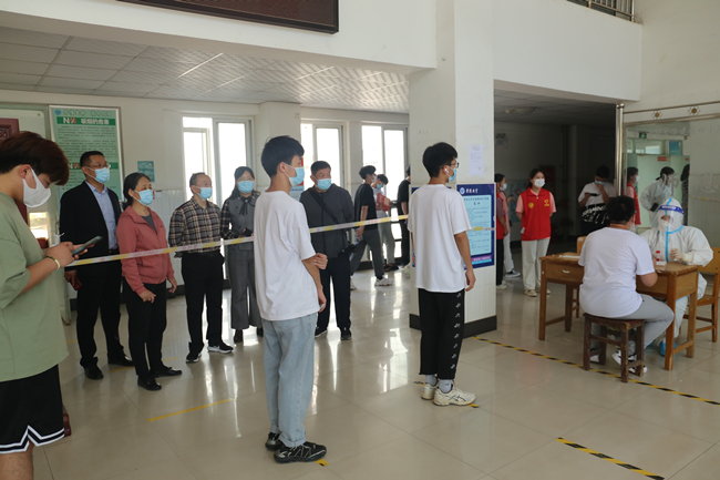 陈灿一行先后到校医务室、10号楼、16号楼、17号楼、3号楼核酸检测现场实地查看采样流程、秩序维护、防控措施落实,详细了解采样点区域划分、现场组织、采样进度等情况,对核酸检测工作人员的辛苦付出表示诚挚感谢和敬意。
