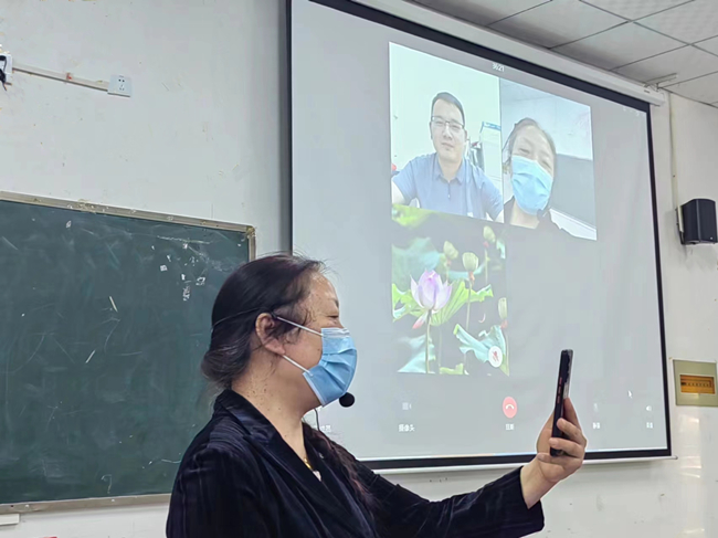张兰玲教授与邓辉在思政课堂上进行微信连线交流