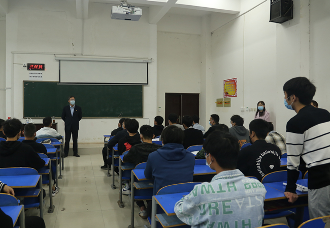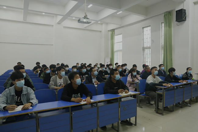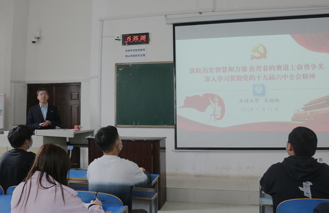 本站讯 5月11日下午,校长宋晓炜到机械与汽车工程学院以《汲取历史智慧和力量 在青春的赛道上奋勇争先 深入学习贯彻党的十九届六中全会精神》为题讲授思政课,学院领导及师生代表随班听课。