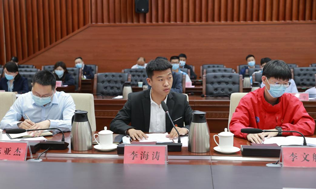 座谈会上,我校优秀团员代表李海涛等9名不同岗位青年代表结合自己的工作进行了发言。李海涛同学从做理想远大、信念坚定的模范;做刻苦学习、锐意创新的模范;做艰苦奋斗、无私奉献的模范三个方面,结合自身实际谈认识、谈感受、谈理想,表达了作为新时代的团员青年,将牢记习近平总书记的殷殷嘱托,立志民族复兴,争取跑出当代青年的最好成绩。