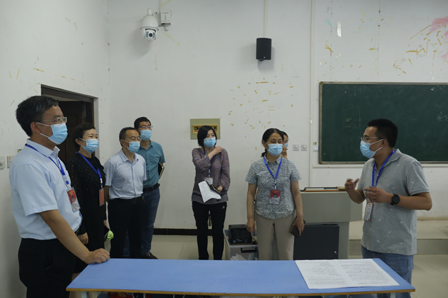 会议结束后,校领导及职能处室负责人,先后实地查看标准化考场和隔离考场等场地,对考点疫情防控、考务培训、考生入场流程等工作进行检查,详细询问有关工作细节,了解考前各项工作落实情况,确保此次会议精神落实到位。