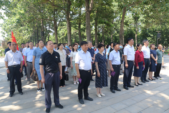 7月7日上午,学员们来到兰考县展览馆,回顾了焦裕禄同志光辉的一生。一幅幅生动的图片,一件件珍贵的遗物,将大家又带回了当年焦裕禄带领兰考人民治理“三害”战天斗地的动人场面,全体学员认真学习了焦裕禄制定的“干部十不准”,进一步提升了清廉意识和公仆意识。在兰考县展览馆,党员们在鲜艳的党旗下重温入党誓词,将“不忘初心、牢记使命”的责任担当融入到铮铮誓言之中。在焦桐广场,学员们瞻仰了焦裕禄当年亲手栽种的“焦桐”,聆听了“焦桐的故事”,朗诵了《念奴娇·追思焦裕禄》,深刻感悟“亲民爱民、艰苦奋斗、科学求实、迎难而上、无私奉献”的焦裕禄精神。