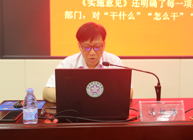本次培训班共安排了5次专题讲座。7月7日下午,副校长赵辉《专业结构调整优化、“人人持证、技能河南”、高考综合改革政策解读及应对》的专题报告,对“精准服务产业发展,调整优化专业结构”“人人持证、技能河南”和“高考综合改革”三个主题分别进行了政策解读,并提出了专业结构调整优化的方向、目标和进行“传统专业提质计划、新兴专业扩容计划、未来专业培育计划、特色专业赋能计划和骨干专业升级计划”“五大计划”的专业建设思路。副校长万是明《学文件,明方向,擘画未来;抓内涵,建“双高”,全力升本》的专题报告,从国家、省、市三个层面分析了我校面临的重大机遇,回顾了我校改革发展的成效,指出了建设中存在的问题,提出了下一步的努力方向和工作举措。使大家对我校“双高计划”建设和升本工作有了更加清晰的认识,明确了努力方向。7月7日晚,我校法律顾问王峰岚老师做了《加强学生素质教育,提升学校管理水平》的专题报告,结合我校近两年发生的事例,分析了当前学生心理问题多发的情况,指出了加强对学生心理教育的紧迫性,强调了要提升学校管理水平,健全各项管理制度,并严格执行。7月8日,副校长李治《职业教育新法实施背景下高等职业教育产教融合、校企合作实现路径探讨》的专题报告,介绍了产教融合、校企合作的概念和实施背景,国家及地方相关政策,国家产教融合建设试点实施方案及校企合作模式分析,产业学院助力产教融合、校企合作的三个实例等四方面内容。使大家能够对照本职工作,制定更加合理有效的校企合作方案。校纪委书记马林强以《抓牢清廉河南建设 纵深推进从严治党 努力构建风清气正的校园政治生态》为题,向大家解读了《关于推进清廉河南建设的实施意见》,并将我校积极推进清廉开大建设,构建风清气正的校园政治生态,分五个方面十五条举措进行了讲解。使大家加深了对新形势下党风廉政建设和反腐败斗争的认识,提高了不敢腐、不能腐、不想腐的能力和水平。