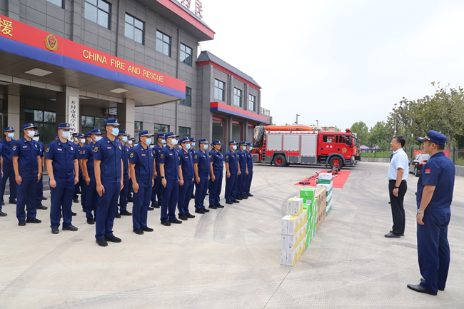 校长宋晓炜、党委副书记储建新一行在龙亭区消防救援大队开展建军节走访慰问活动