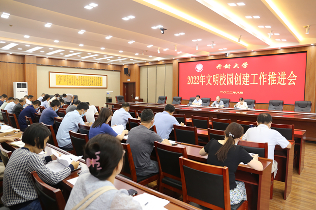 会上,校党政办公室主任陈岩传达了河南省精神文明建设指导委员会及开封市文明办下发的关于2022年文明校园创建工作的相关通知,并对我校文明校园创建工作进行了说明。校党委宣传部副部长高剑南解读了《2022年文明校园创建工作指标体系》,对具体创建工作进行了安排。