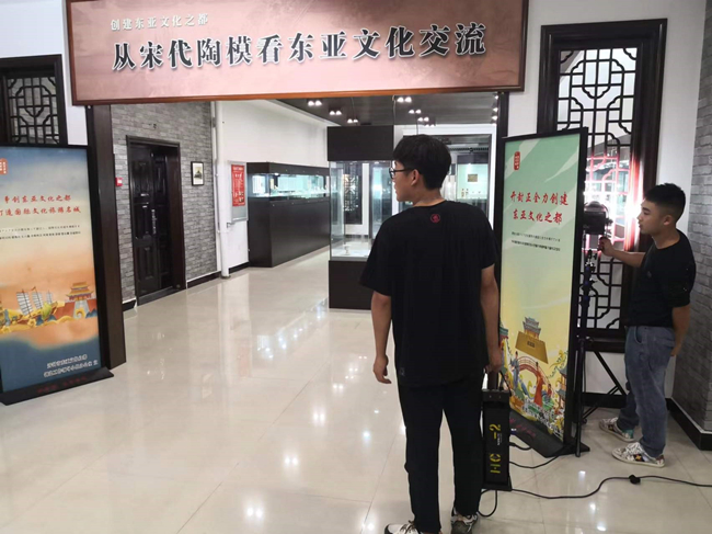 据悉,开封市“东亚文化之都”创建工作领导小组办公室将我校大观博物馆确定为开封市“东亚文化之都”建设宣传片拍摄地之一,摄制组于8月20日来到大观博物馆,对宋代陶模的跨文化研究进行了采访,以《从宋代陶模看东亚文化交流》为题进行了拍摄。