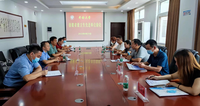验收组严格按照《河南省卫生单位检查验收评分表》标准,通过听取汇报、查阅资料、实地考察等形式,对我校创卫工作进行验收。重点查看了爱卫组织管理、校内卫生环境、病媒生物防治、食品安全、健康教育等方面工作的开展情况。