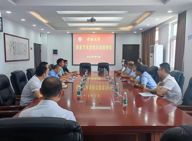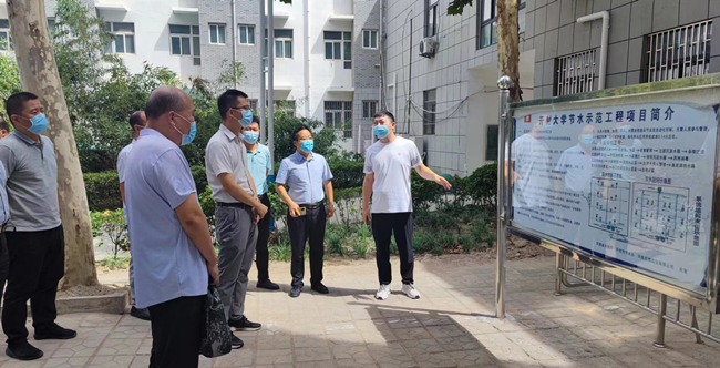 本站讯 近日,省发改委、住建厅组织专家对开封市创建国家节水型城市进行现场考核。我校节水工作作为开封市创建工作的4个示范项目之一,于8月23日上午迎来专家组检查验收。副校长李治、后勤管理服务中心负责人陪同验收。