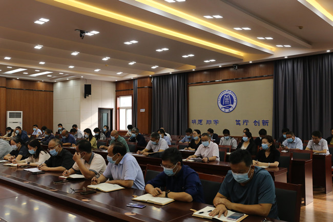 党委副书记储建新传达了全省教育系统近期重点工作视频会议精神,部署了党的二十大维稳安保工作,明确了学生返校相关要求。副校长李治传达学习了全省高校新冠肺炎疫情常态化防控方案,并就师生思想、校园管理、健康监测、应急演练工作提出要求。