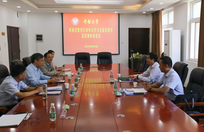 本站讯 9月23日上午,河南省教育厅对外合作与交流处二级调研员陈兆武处长一行2人莅临我校,对我校开展中外合作办学项目专项督查。校长宋晓炜、副校长万是明出席了座谈会,科研外事、国际教育学院负责人参加了会议。