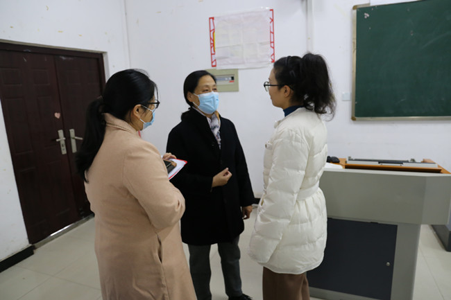 校党委书记陈灿与上课教师交流