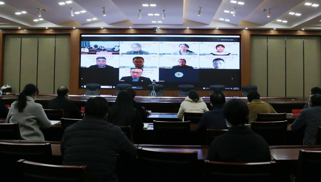 会上,陈灿对调研组的云端调研和指导表示热烈的欢迎和衷心的感谢,希望专家组对我校思政课建设把脉问诊不吝赐教,为我校深化思政课建设积累经验,为深入落实立德树人根本任务提供支持。马克思主义学院院长常素芳从马克思主义学院机构设置、思政课教学组织实施、师资配备及培训、新课程开设、思政课建设典型经验与特色做法、思政课建设存在的问题与困惑等方面向调研组进行汇报。