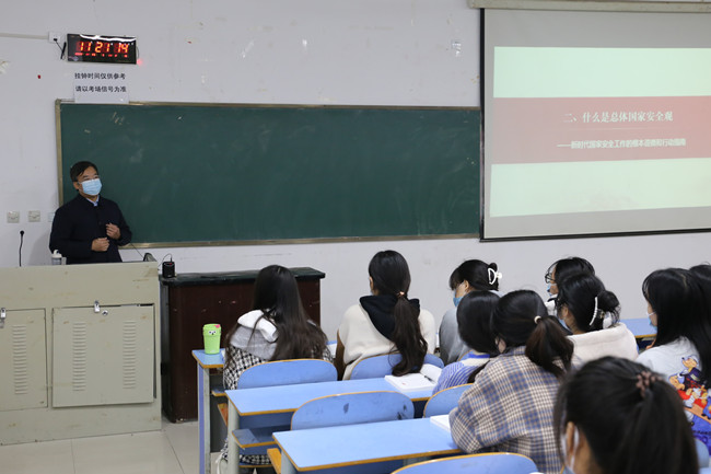 卢慧勇老师讲授了《全面贯彻落实总体国家安全观》专题内容,带领学生学习了“为什么说保证国家安全是头等大事”、“什么是总体国家安全观”、“怎样着力防范化解重大风险”等内容,整堂课氛围活跃,师生互动频繁,学生们听课认真,回答问题积极。