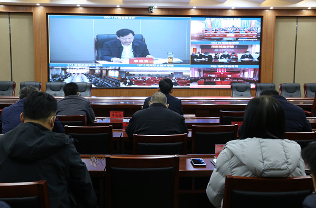 本站讯 12月13日下午,河南省教育厅、人力资源和社会保障厅召开2023届河南省普通高校毕业生就业创业工作网络视频会议。我校在行政楼第二会议厅设立分会场组织收听收看。校长宋晓炜、就业与校企合作处和各院部负责人、各院部副书记、全体毕业班辅导员收看了此次视频会议。