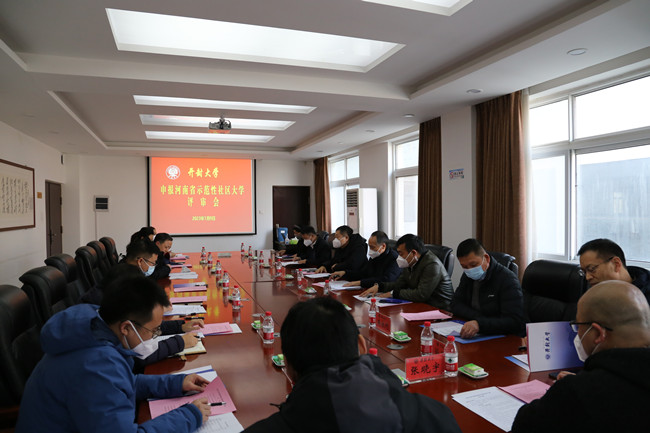 本站讯 1月9日下午,河南省示范性社区大学评审专家组及开封市教体局相关领导莅临我校,对我校河南省示范性社区大学申报工作进行考察评审。校长宋晓炜,校党委委员、开封卫校党委书记曾小平,各相关业务处室及继续教育学院负责同志参加评审会。