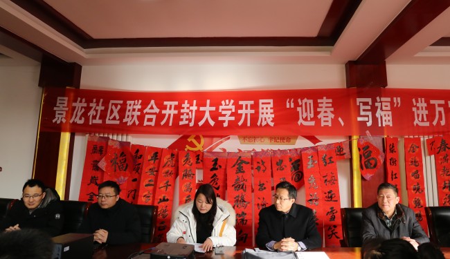 活动开始前,双方进行了亲切座谈,表达了我校对景龙社区居民群众的新春关怀和祝福,并将我校历次书画活动的书画集等赠送给社区。