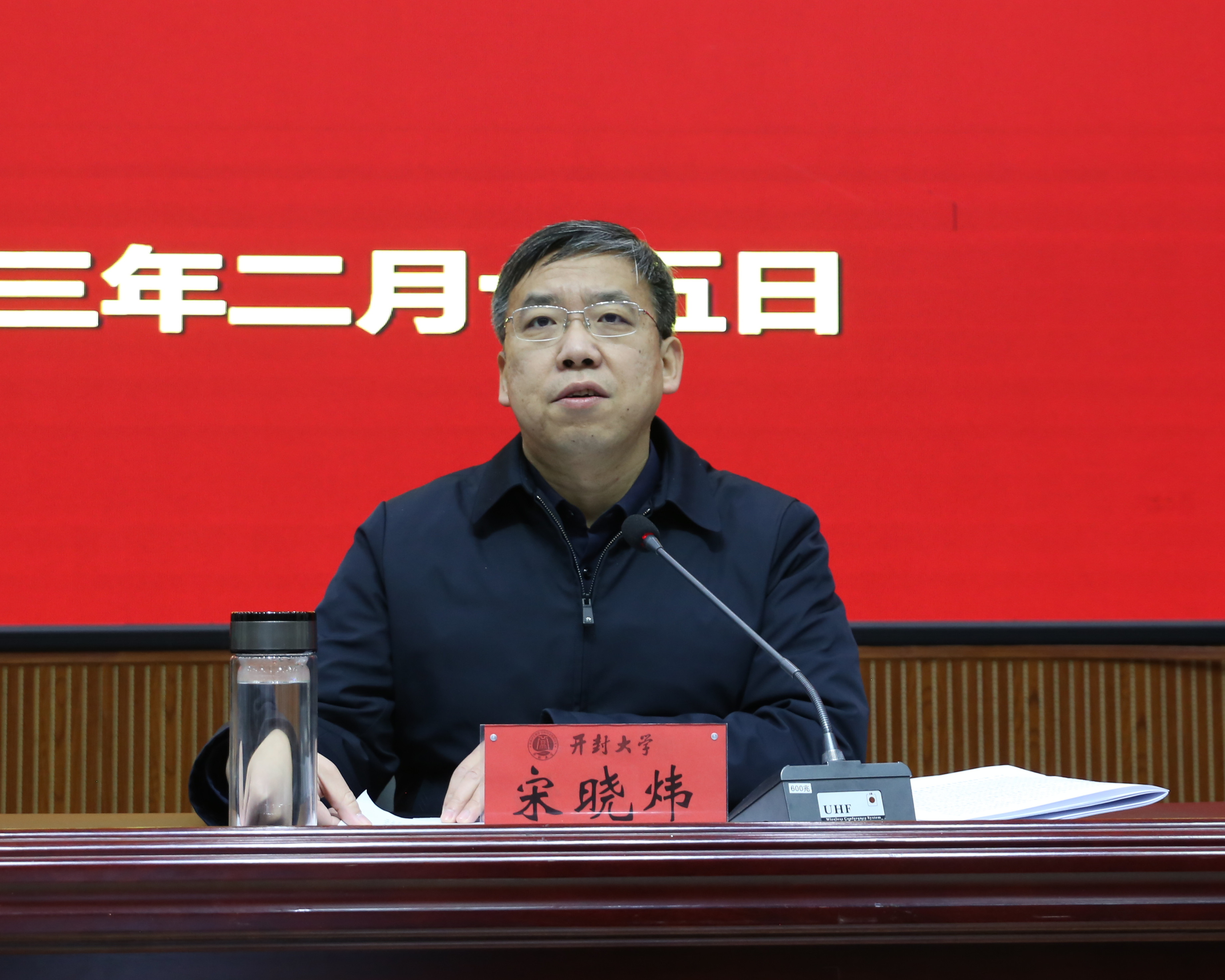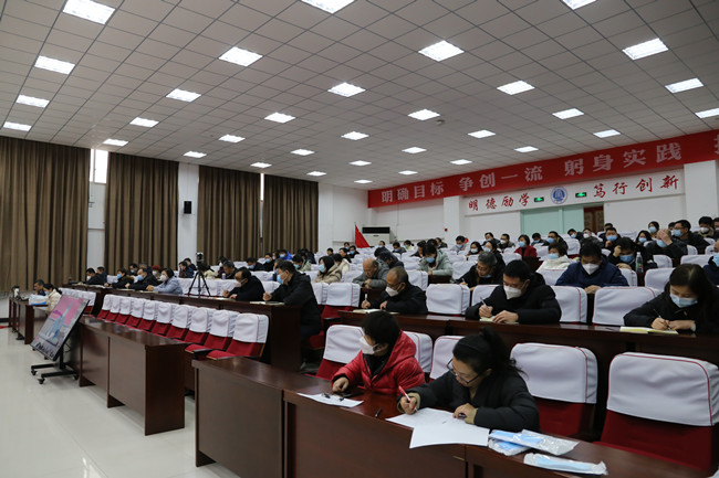 宋晓炜按照“12123”总体工作思路对于我校年度工作进行部署:一是以党建“第一责任”引领和保障发展“第一要务”。把学习宣传贯彻党的二十大精神作为当前和今后一个时期的首要政治任务,学习宣传阐释党的创新理论,严格落实意识形态工作责任制,强化舆情应对处理,强化基层党组织建设,深入推进全面从严治党。二是强力推进“升本”与“双高”学校建设。积极落实职业本科人才培养贯通工作,持续推进专业群建设,进一步明确省“双高”学校建设验收前的各项工作任务,着力推进“提质培优”项目,全力推进产教融合示范校建设,持续跟进中央财政贴息贷款项目,推动“开大讲坛”高效实施。三是确立人才培养的核心地位。推动思政课程和课程思政协同发展和深度融合,开展第一批辅导员工作室的申报和培育,做好我校“河南省高校心理健康教育试点单位”建设,创新国防教育模式,着力提升共青团服务大局、服务青年实效,推进三教改革,做好开封市第一届职业技能大赛的赛项承办工作,科学合理制定2023年度招生计划,提升校企合作水平,塑造新的合作品牌,开展书记校长访企拓岗促就业专项行动,持续加强就业信息化建设。四是加强校园建设、师资队伍建设。启动学校分配制度改革,制定科学合理的分配制度,完善职称评审制度,持做好职称评审工作,完成学术交流中心工程建设,推动东体育场施工建设,做好图书馆北侧报告厅的设计工作,进一步探索智慧校园融合发展,加强特色校园文化建设。五是切实提升科研转化能力、服务社会能力、国际交流能力。推动科研平台提质升级,促进高级别高水平项目再上新台阶,建立科研设施和仪器开放共享机制,持续发挥开封网格学院、工匠学院的服务社会能力,积极参与和申报国际交流项目,开创国际交流新局面。六是稳步推进其他重点工作。加强内部治理,守好校园、实习安全底线。宋晓炜要求全校教职工要把工作装在心中,把责任扛在肩上,将智慧和力量凝聚到学校职业教育高质量发展上来,力争取得更多标志性成果,再谱开大华章,以实际行动践行党的二十大精神!