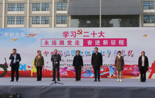 本站讯 为丰富校园文化生活,加强社团建设,引导青年学生提高文化道德修养与综合素质,3月30日下午,我校“学习二十大、永远跟党走、奋进新征程”第十四届社团文化艺术节在大观广场开幕。校党委书记陈灿、校长宋晓炜、党委副书记储建新、工会主席成芳出席开幕式,学校部分职能部门负责人及2000余名学生参加了活动。
