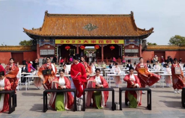 本站讯 4月6日上午,2023中国(开封)清明文化节非遗宋代茶艺展演及大宋北苑品鉴活动在龙亭公园午朝门广场举行。我校48名学生参加此项展示活动,校长宋晓炜、副校长李治受邀出席活动,就业与校企合作处、旅游学院负责人及相关教师参加活动。