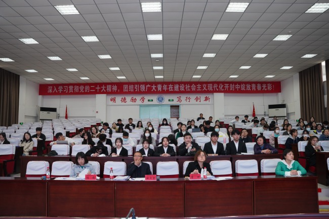 本站讯 4月7日上午,我校2023年“挑战杯”大学生课外学术科技作品竞赛校级比赛在行政楼第一会议厅举行。校党委副书记储建新参加活动并讲话,河南省委党校教授田文富、郑州大学电气与信息工程学院教授罗勇、河南大学物理与电子学院测控系主任吕浩杰、我校创新创业学院院长闫俊、我校科研外事处副处长曹明作为评委参加活动,校团委书记刘圣亚主持比赛。