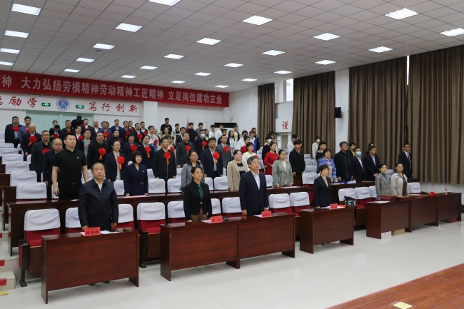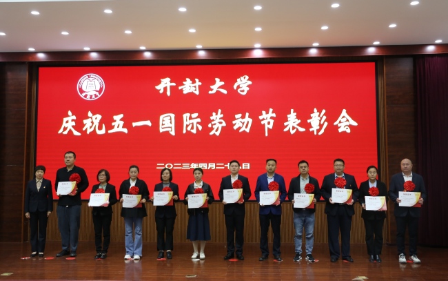 本站讯 汗水浇灌梦想,劳动创造价值。4月28日上午,我校在行政楼第一会议厅召开庆祝“五一”国际劳动节表彰会。校党委书记陈灿,校长宋晓炜,校党委副书记储建新,校党委委员、工会主席成芳出席会议并为获奖集体和个人进行了颁奖。我校在2022年河南省教育系统教学技能竞赛中的获奖者、学校获得工会先进集体和先进个人的代表、学生代表参加了活动。会议由校工会副主席张红艳主持。