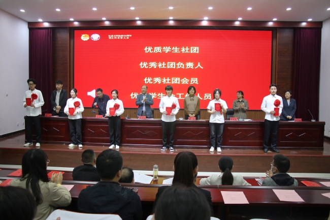 马克思主义学院院长常素芳领学了《习近平总书记给中国农业大大学科技小院的同学们的回信》。学生工作部部长付喆宣读了《bat365在线官方网站关于表彰2022年度bat365在线官方网站先进基层团组织及先进个人的决定》。与会领导为受到表彰的集体和个人代表进行颁奖。